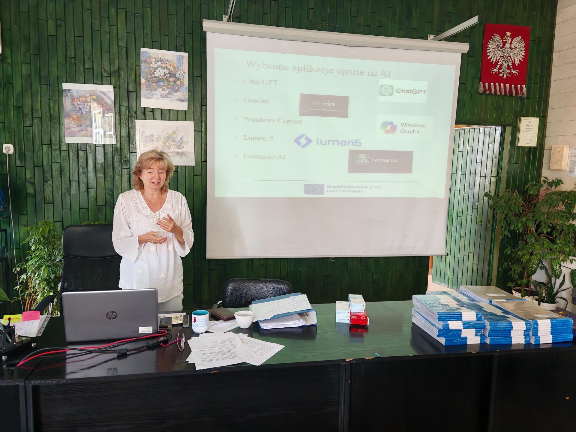 Nauczyciele poznawali też na szkoleniu nowoczesne technologie informacyjno-komunikacyjne i aplikacje dające nowe, ciekawe możliwości w pracy z młodzieżą, np. Leonardo AI, Gamma APS, Lumen 5, Chat GPT, CANVA, Gemini, Windows Copilot. Mieli okazję planowania i wdrażania poznawanych metod i technologii w pracy dydaktycznej. Poprzez ćwiczenia, dyskusje i studia przypadków, uczestnicy szkolenia zdobyli praktyczne umiejętności i narzędzia niezbędne do efektywnego wykorzystania aktywizujących metod w swojej pracy zawodowej.