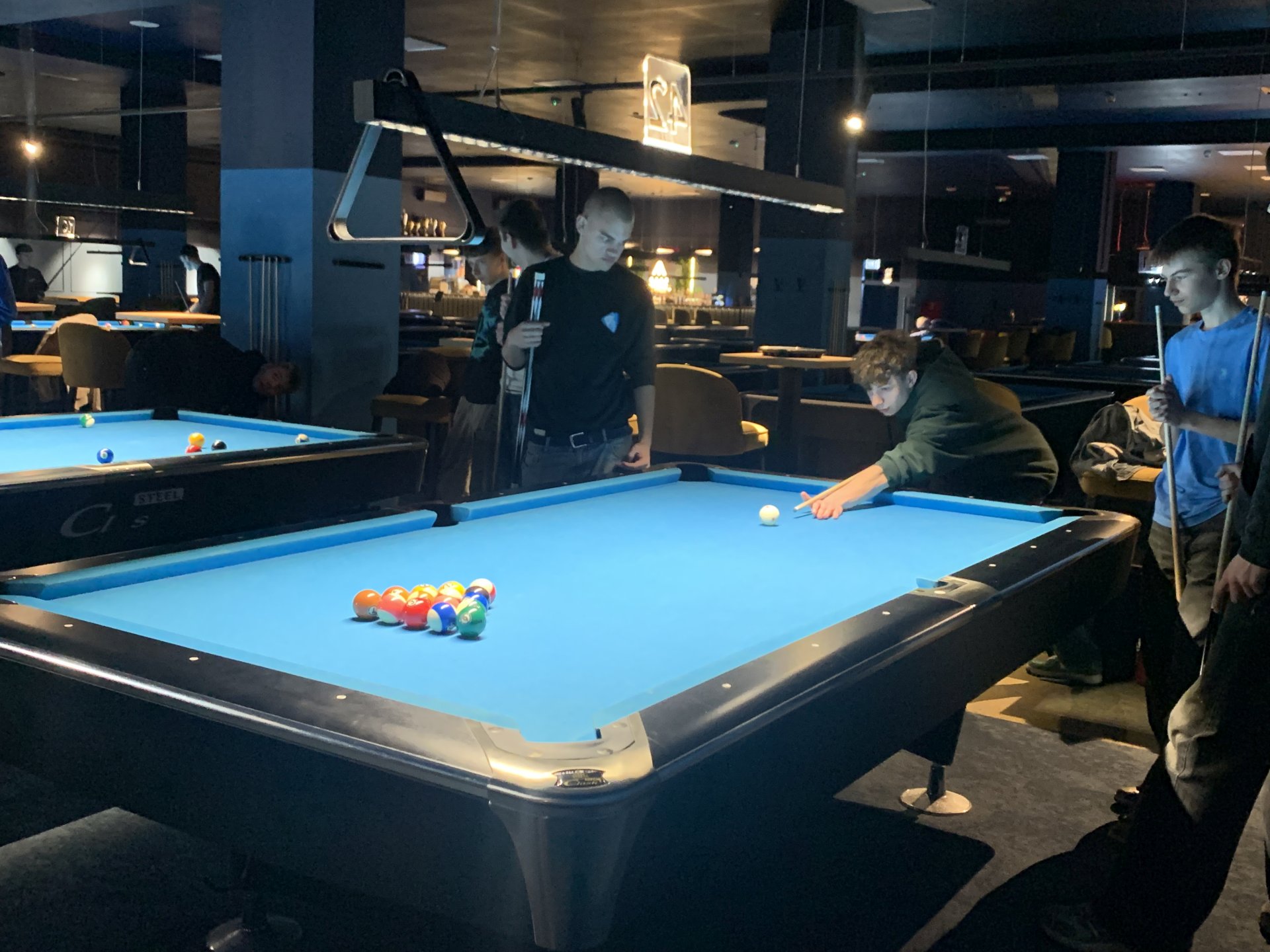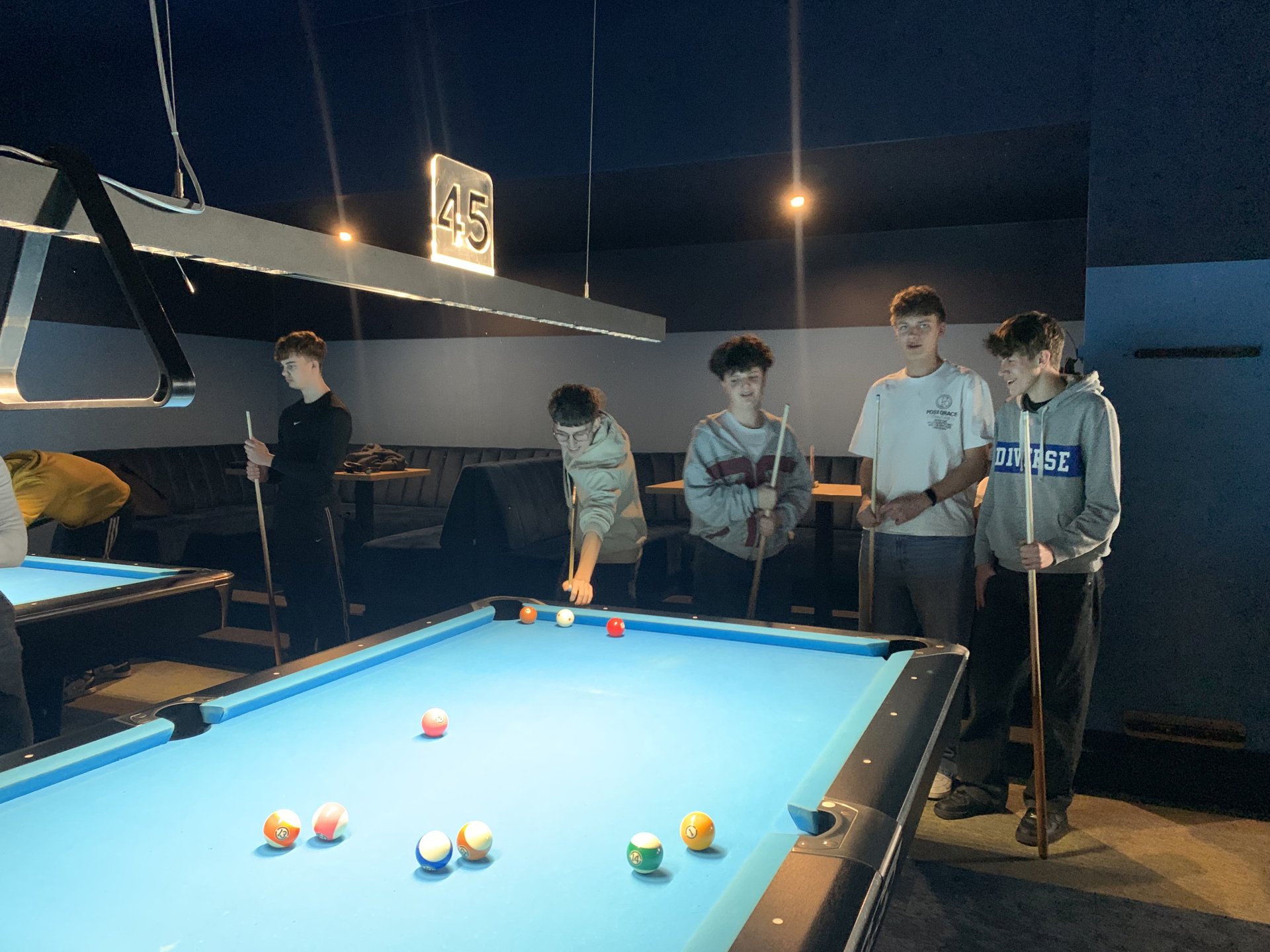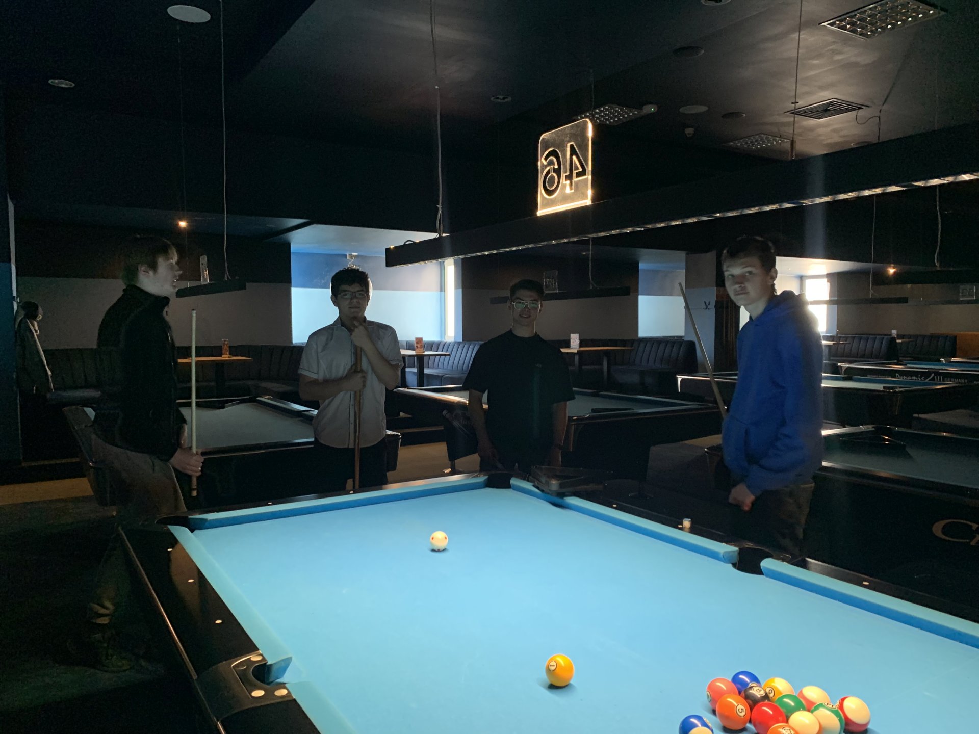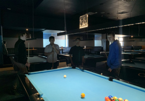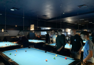 W piątek uczniowie klasy 2tmm spędzili przyjemne popołudnie przy stołach bilardowych. Choć bilard bywa postrzegany jedynie jako forma rozrywki, w rzeczywistości to sport wymagający skupienia, dokładności i dobrej koordynacji ruchowej. Regularna gra wzmacnia refleks, umiejętność planowania, logiczne myślenie oraz uczy cierpliwości.